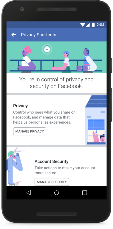 A felhasználói visszajelzések alapján a Facebook korábbi adatvédelmi és egyéb beállításait nagyon nehéz volt megtalálni a közösségi oldalon. Most a Facebook teljesen átalakította az adatvédelmi beállításokat: a mobil eszközökön használatos felületen a Beállítások menüt teljes egészében áttervezték, hogy a fontos beállításokat a felhasználók könnyebben megtalálhassák. Ahelyett, hogy közel húsz különböző menüpontban érnék el a beállítási opciókat, ezek most már egyetlen közös helyről, egyszerűen hozzáférhetők.