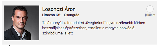 Áron szintén régi arc, anno 2006-ban ő kapta meg a Time magazin „év innovációja” díját az üvegbetonnal. Legendás arc, de üzletember kéne mellé… Azért persze ikon: