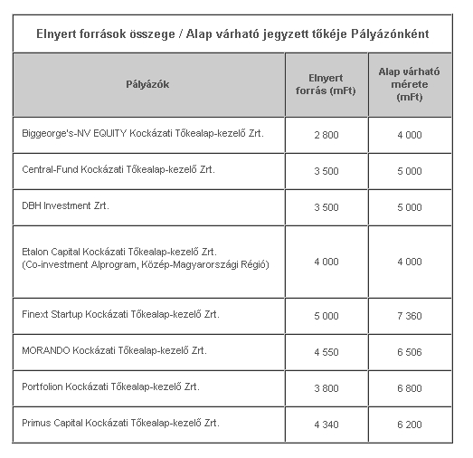 Így egy magvető és egy növekedési alap jön létre. A magvető alapok kezelésére a már együttműködő Jeremie kockázati tőkealap-kezelők is pályázhatnak, a növekedési alapok kezelésére azonban csak új alapkezelők pályázhatnak. A magvető alapok pénzeire maximum 3 éves, 200 millió forint alatti árbevétellel rendelkező cégek pályázhatnak, a befektetési érték maximum 150 ezer euró lehet.