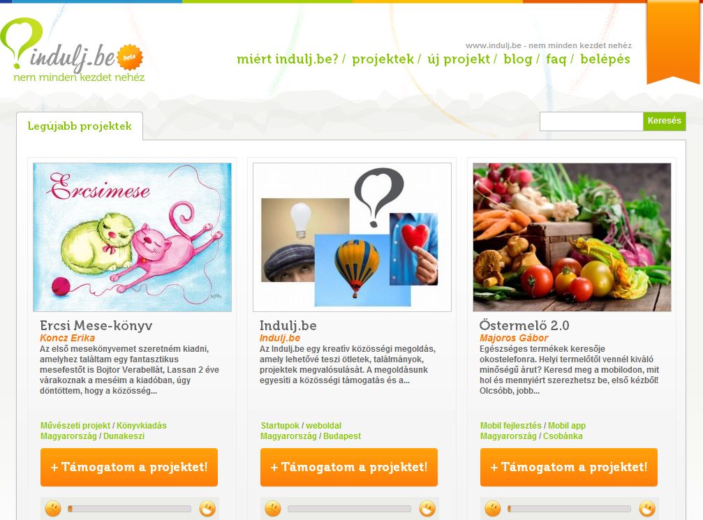 A hétfőn éjféltől élesben működő Indulj.be segítségével bárki kiadhatja a könyvét, lemezét, de ugyanígy lehetővé teszi egy festőművész eszközeinek beszerzését, egy új online szolgáltatás beindítását, egy mobil alkalmazás kifejlesztését vagy éppen egy új szuperkütyü prototípusának legyártását. – összegzi a szolgáltatás lényegét Moldován Csaba ötletgazda. Hetente több projekt jelentkezését várjuk, hiszen hatalmas igény mutatkozik a hiánypótló szolgáltatásra.