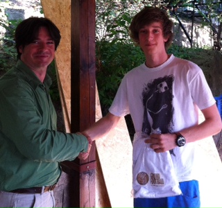 A díjat a Birdband képviseletében Ondrejka Gábor, a Grundfoci.hu-tól pedig Müller Tamás adta át. (Képünkön a nyertesnek Müller Tamás adja át a díjat.)