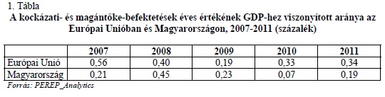 A 2011-es év első felében lezárt néhány nagyobb értékű befektetés nyomán a magyarországi vállalkozásokba befektetett kockázati- és magántőke értéke az EVCA PEREP_Analytics adatai szerint 2011-ben megháromszorozódott, 195 millió euróra emelkedett. A befektetéshez jutó magyarországi cégek száma pedig több mint a duplájára, 37-re nőtt. A cégek túlnyomó hányada, 32 vállalkozás első ízben kapott az adott befektetőtől kockázati-vagy magántőkét. A 2011-ben végrehajtott magyarországi befektetések értékének 80%-át a magántőke-befektetők által végrehajtott kivásárlások képviselték, a finanszírozott vállalkozások 80%-a azonban életének korai szakaszában tartó cég volt.