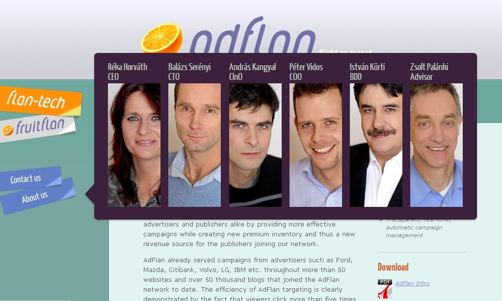 A Flan Technologies-t média salesben, médiakutatásban, algoritmus tervezésben és különböző online technológiák fejlesztésében tapasztalatot szerzett sikeres vállalkozók alapították. A Flan Tech új, modern technológiája lehetővé teszi, hogy az összegyűjtött adatok hasznosításával az online értéklánc minden szereplője egyedülálló B2B és B2C szolgáltatásokat fejlesszen ki és vezessen be sikeresen. A cég technológiájának erőssége az ötlet, a kreatív, méretezhető és üzlet orientált megvalósításban és a letisztult felhasználói felületben rejlik.