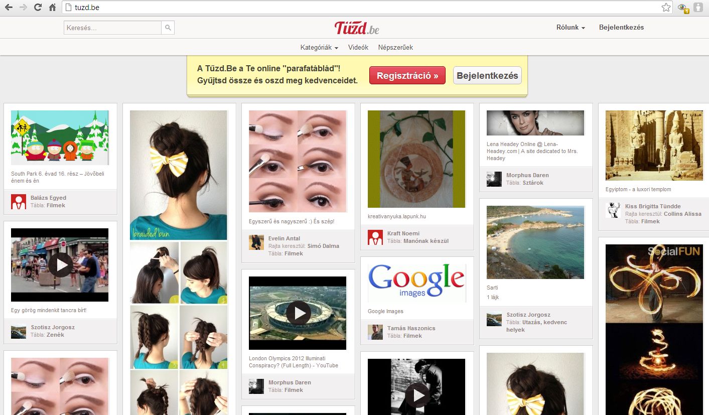 Nagy bátorság kell egy startup vállalkozás elindításához, hiszen tengernyi munka, előkészítés és fejlesztés után alakul ki a design, a funkcionalitás és az üzleti modell. Ezt a rögös utat kikerülve jelent meg a napokban a Tűzd.be, mindenki számára megtévesztő hasonlóságot mutatva a végtelenül sikeres közösségi képgyűjtögető oldalhoz, a Pinteresthez.