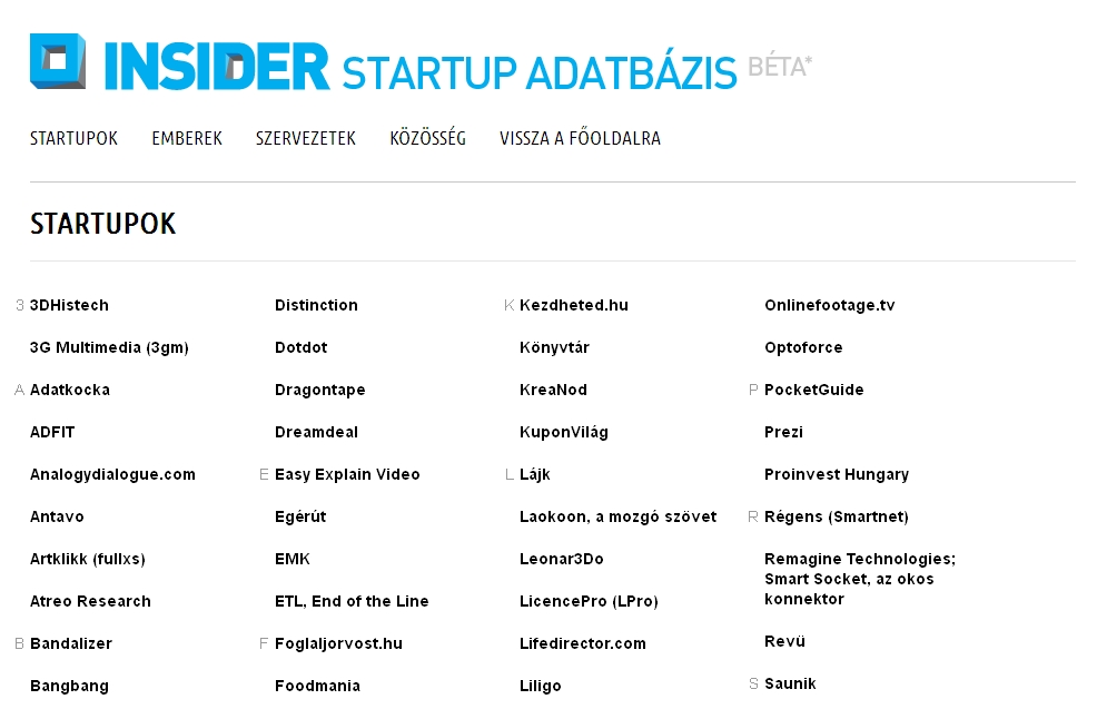 Jelen pillanatban már a legfontosabb startupok kivétel nélkül (!) megtalálhatók benne, és gőzerővel dolgozunk azon, hogy hamarosan az összes kulcsszereplő is elérhető legyen oldalunkon, a www.insiderblog.hu/startup-adatbazis címen.