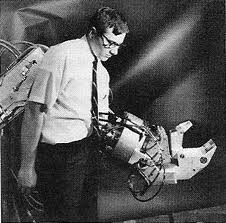 Már azelőtt is létezett azonban egyfajta Vasember, mielőtt a Marvel Comics képregénykiadó 1963-ban életre keltette Tony Starkot és vállalatát, a Stark Industries-t. 1958-ban ugyanis a GE-nél dolgozó amerikai Ralph Mosher az AEC-USAF közös nukleáris repülőgép-hajtómű fejlesztési programjához kifejlesztett egy robotot, mely a „Handyman” (ezermester) nevet kapta.