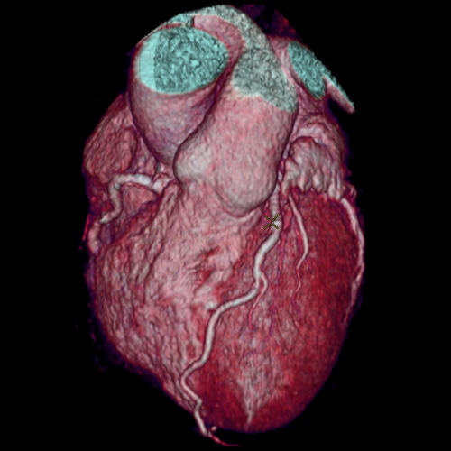 Felvételen a szív: 1 szívdobbanás, nagy felbontás, mozdulatlan, alacsony dózisú szív-CT; 80kV / 500mA / 0,28sec rotáció / BMI 23 / 55 bpm / 0.9mSv. (Forrás: GEreports.com)