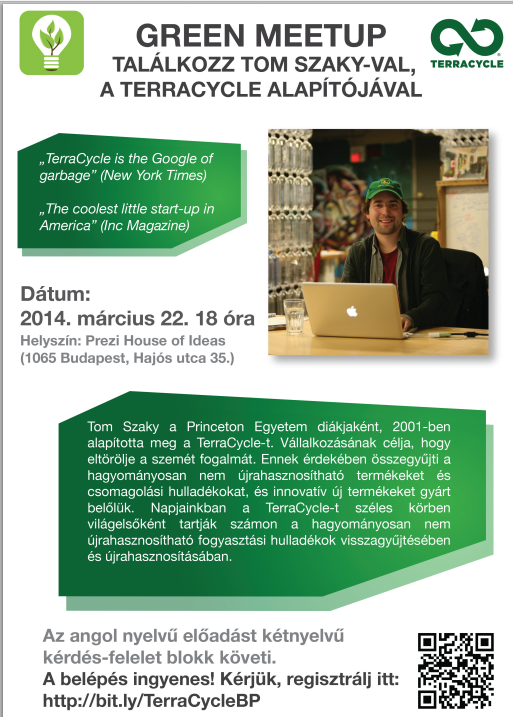 Tom Szaky, a TerraCycle alapítója és vezérigazgatója március 22-én Budapesten tart előadást a Green Meetup keretében.