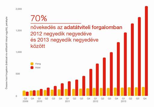 • 2013 negyedik negyedévében a mobil szélessávú előfizetések száma kb. 150 millióval, összesen 2,1 milliárdra emelkedett; ez 40%-os növekedést mutat az előző év ugyanezen időszakához képest.