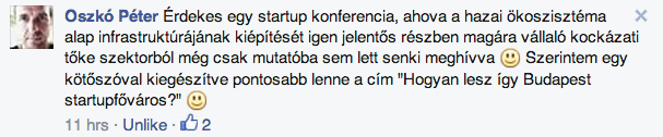 Nos ismét az FB-n felizzott egy vita, ami a VC Summit-on indult. Oszkó Péter a kommentben nehezményezte, hogy miért gondolják egyesek, hogy „közösségi lehet” egy esemény, amiből éppen a befektetők maradnak ki? Idézem: