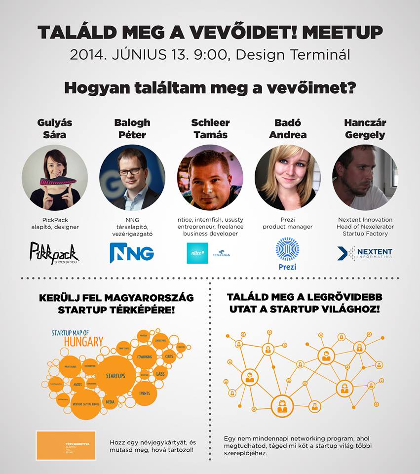 Találd meg a vevőidet! meetup a BME Management Szakkollégium szervezésében. 2014. június 13. 9:00-12:00 @ Design Terminál (regisztráció). Blogunk az esemény médiapartnere.