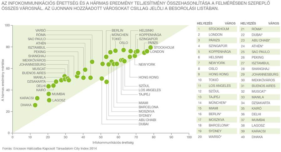 Az index 40 várost rendez sorba, aszerint mérve infokommunikációs érettségüket, hogy mekkora szerepet kapnak az infokommunikációs beruházások a gazdaság, a társadalom és a környezet fejlesztésében