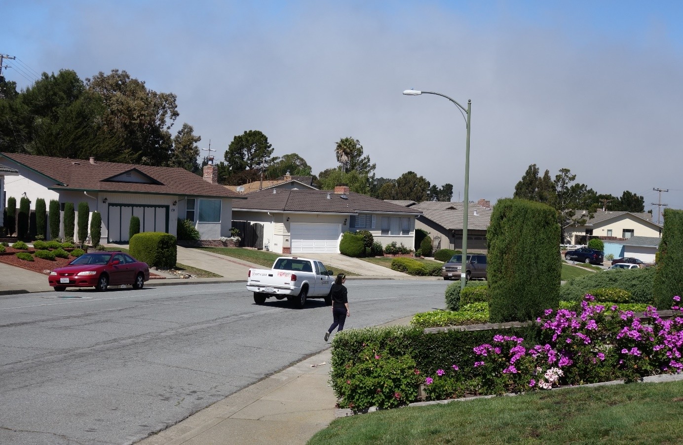 * Tipikus millió dolláros házak San Francisco külvárosában – háttérben a nevezetes óceáni köd, ami beteríti SF-t (fotó: dp)