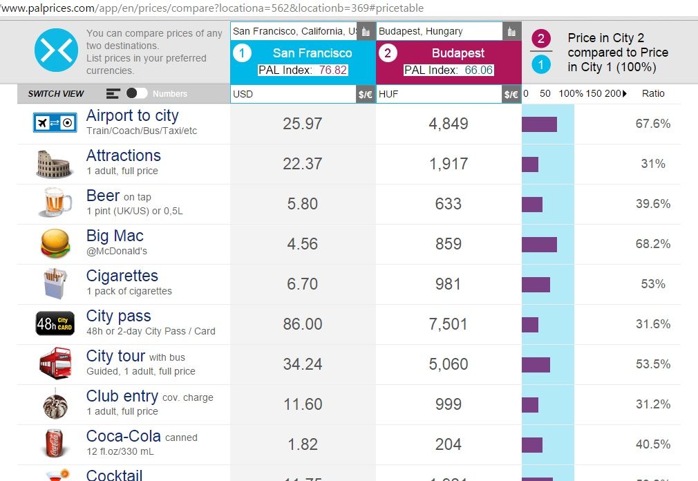 * San Francisco és Budapest árai a PalPrices összehasonlításában (palprices.com)