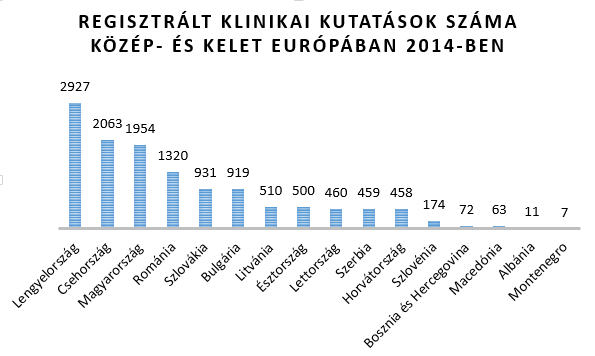 A közép- és kelet európai régióban Lengyelországban zajlott a legtöbb klinikai kutatás a múlt évben, szám szerint 2927, őt követi Csehország 2063 kutatással, majd Magyarország, ahol összesen 1954 regisztrált klinikai kutatás volt folyamatban – derül ki az Egyesült Államok-beli National Institutes of Health (NIH, Nemzeti Egészségintézet) által működtetett ClinicalTrials.gov adataiból.