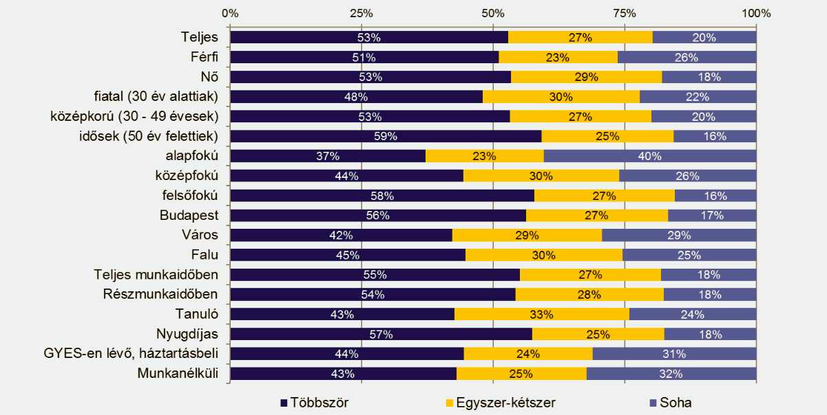 A fiatalok, az alap- ill. középfokú végzettségűek, a városban élők, a tanulók azok, akik a színházi programot jó előre megtervezik és kevésbé döntenek ad-hoc módon arról, hogy akár aznap este színházba mennek. Eközben egyre magasabb azoknak a száma, akik igénylik a lehetőségét, hogy online és mobilon is böngészhessék a programot, valamint vásárolhassanak jegyet.