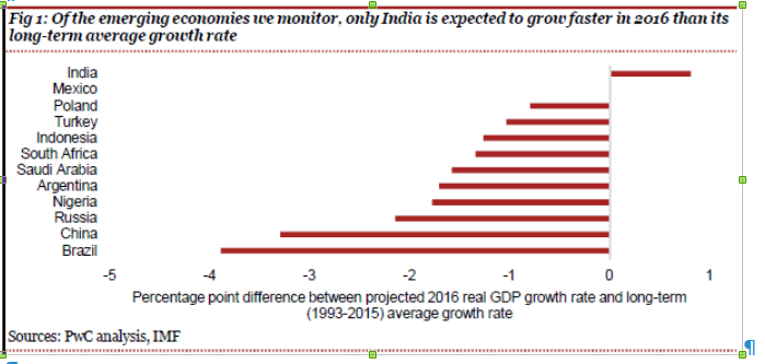 „Várakozásaink szerint az Egyesült Államokban a fellendülés 2016-ban intenzívebbé válik, és az Egyesült Királyságban is a fogyasztásra épülő további növekedés lesz jellemző. Az euróövezeti válság végére utaló jeleknek is lassan jelentkezniük kell. Az egykor erős BRIC-államok azonban 2016-ban még egy nehéz év elé néznek, mely alól India lesz figyelemre méltó kivétel“ – mondta John Hawksworth, a PwC egyesült királyságbeli vezető közgazdásza.
