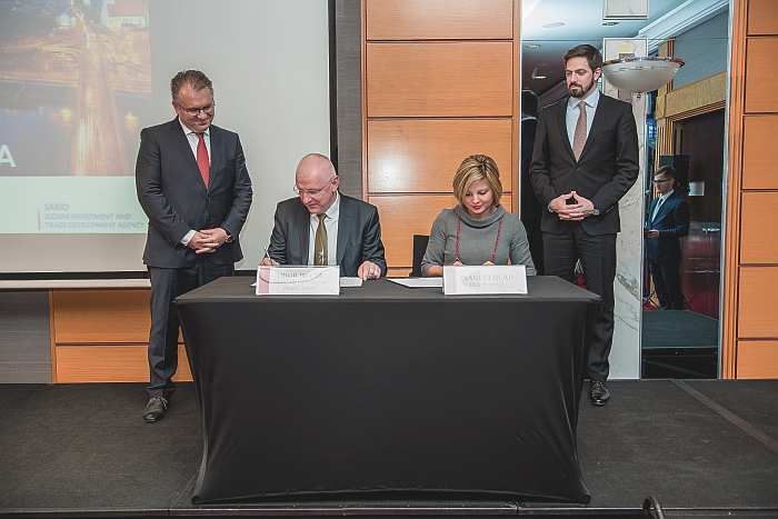 Az esemény keretében Oláh Zsanett, a Magyar Nemzeti Kereskedőház vezérigazgatója és Tibor Bucek, a Szlovák Befektetési és Kereskedelemfejlesztési Ügynökség (SARIO) külkereskedelmi igazgatója együttműködési megállapodást írt alá (képünkön az ünnepélyes aláírás pillanata).