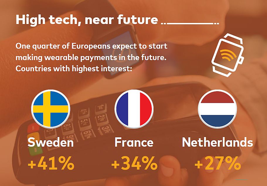 Az egyérintéses kártyák elsöprő sikere a magyarok körében is megteremtette az igényt a viselhető fizetési technológiák iránt; a kontinensen is több mint 175 millió európai fizetne viselhető eszközzel. A Mastercard friss kutatása szerint az európaiak egynegyede (24%) már szeretne okosórával, karkötővel, kulcstartóval, vagy egyéb viselhető eszközzel fizetni. A magyar megkérdezettek 27 százaléka nyitott az új fizetési technológiára.