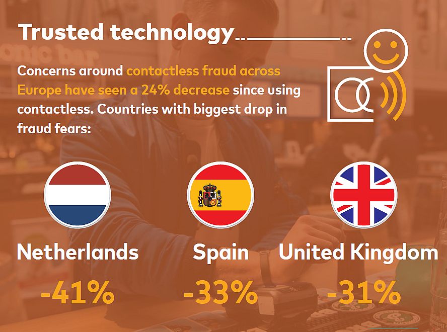 A Mastercard és Maestro kártyákkal egyérintéssel végrehajtott fizetések összege az elmúlt évben 145 százalékkal nőtt, és Európában is egyre többen fizetnének viselhető eszközök segítségével. A folyamatos bővülés mellett évről évre egyre jobb az innovatív eszközök fogyasztói megítélése. Legnagyobb mértékben a visszaélésektől való félelem csökkent (-24%). Ennek visszaesése Hollandiában (-41%), Spanyolországban (-33%), és az Egyesült Királyságban (‑31%) volt a legjelentősebb. (Egy remek infografika a témáról a cikk végén.)