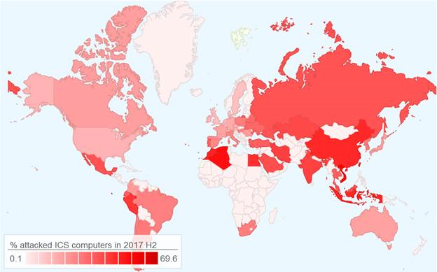 Az ICS rendszerek elleni támadások TOP 5 országa: Vietnám (69,6%), Marokkó (60,4%), Indonézia (60,1%), és Kína (59,5%).