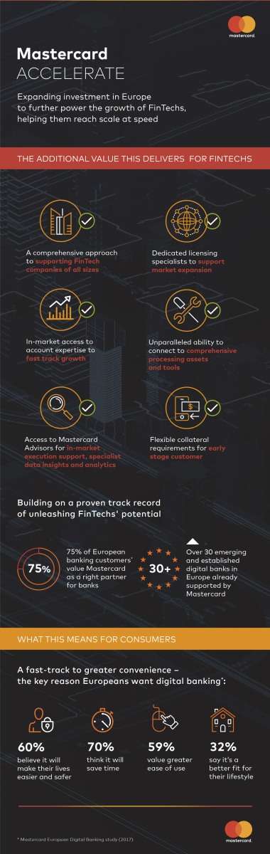 A Mastercard az elmúlt években több úttörő vállalkozást segített a nemzetközi márkává alakulásban, jelenleg több mint 30 feltörekvő és már régóta stabil digitális bankot támogat Európa szerte. Egyre több fogyasztó kötelezi el magát a digitális bankolás mellett és egyre magasabbak az elvárásaik is – ezt a Mastercard kutatásai is alátámasztják. A digitális banki vállalkozások és a fintech cégek számára világosak a piaci lehetőségek és a Mastercard felkészült arra, hogy segítsen ezek kiaknázásában.