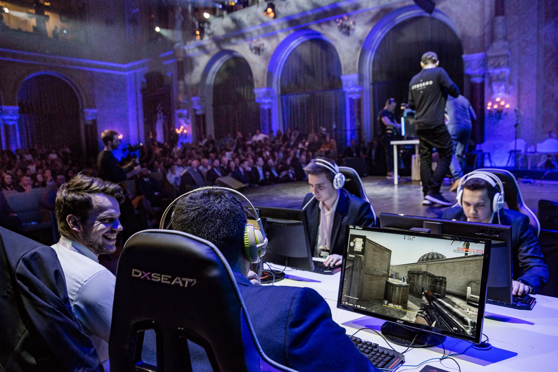 A tavalyi V4-es startupverseny nyitány után most újra sikerült egy országhatárokon átnyúló, végre-valahára angol nyelven folyó, azaz a nagyvilág számára is értelmezhető, látványos show elemekkel tarkított nagyszabású startup rendezvényt összehozni. Ehhez illett a nívós helyszín is, hiszen Bécsben is a Hofburgban szokott lenni a Pioneers. A show elemekhez tartozott egy jó kis e-sport bemutató is, melyen négy amatőr elvert egy profi játékost ;) (képünkön)