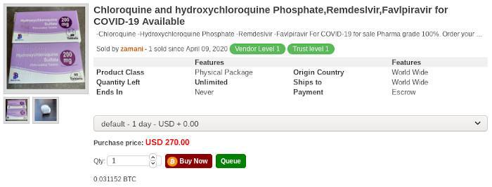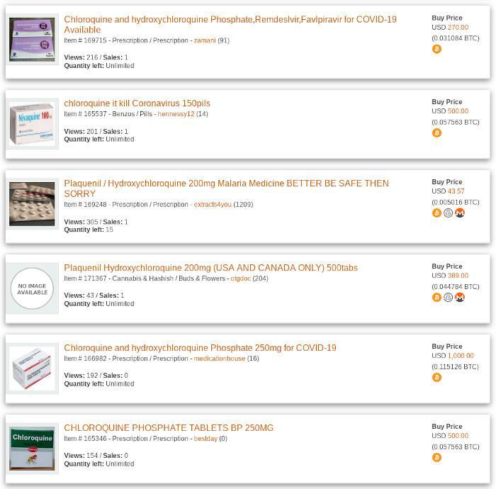 49 chloroquine vagy hydroxychloroquine hirdetést talált a Sophos az Empire Marketen.