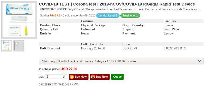 COVID-19 tesztek, egyéni védőeszközök és vírusellenes gyógyszerek a dark weben