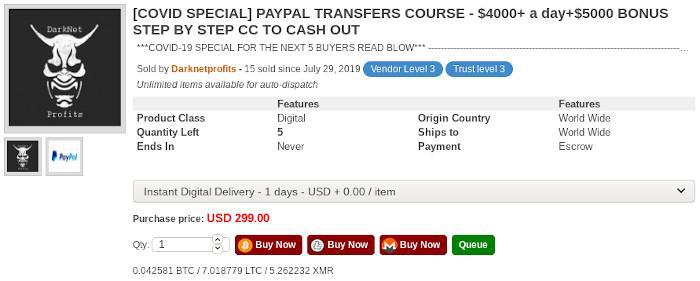A járvány témájú kínálat azonban nem csak fizikai termékekre terjed ki, például a gyógyszerekre, tesztkészletekre vagy egyéni védőeszközökre. A digitális termékeket kínáló eladók is beszálltak a koronavírus üzletbe: ők a csalások és átverések végrehajtásáról szóló útmutatókhoz árulnak hozzáférést.