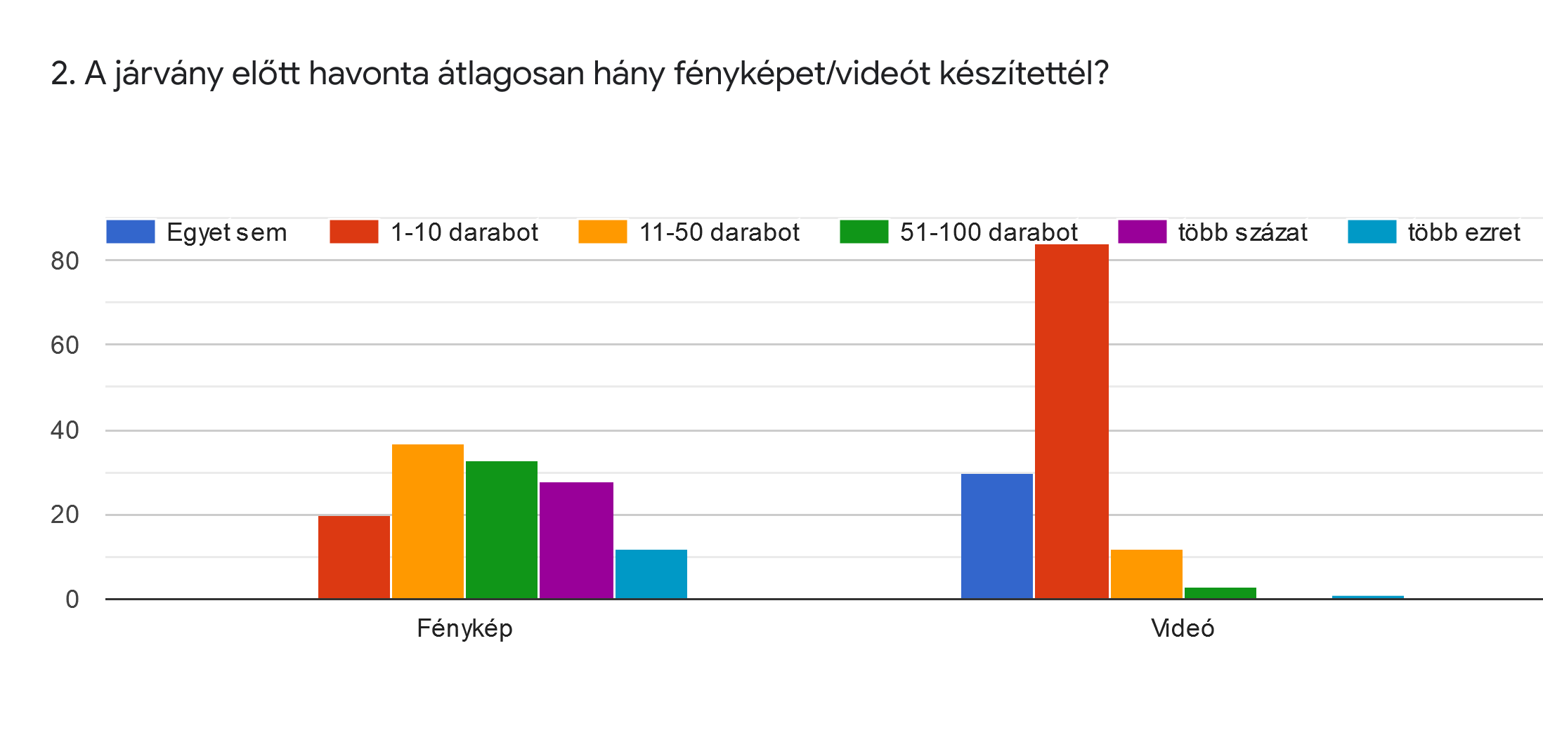 A vállalat legújabb felmérése szerint a koronavírus-járványt megelőzően a válaszadók többsége heti gyakorisággal fotózott (43%) és ennél ritkábban, havonta legalább egyszer videózott (29%). A legtöbben átlagosan 10 és 50 darab közötti képet (28,4%), illetve 10 vagy annál kevesebb videót (64,6%) készítettek havi szinten, a legaktívabbak (9%) viszont havonta akár több ezer képet is lőttek.