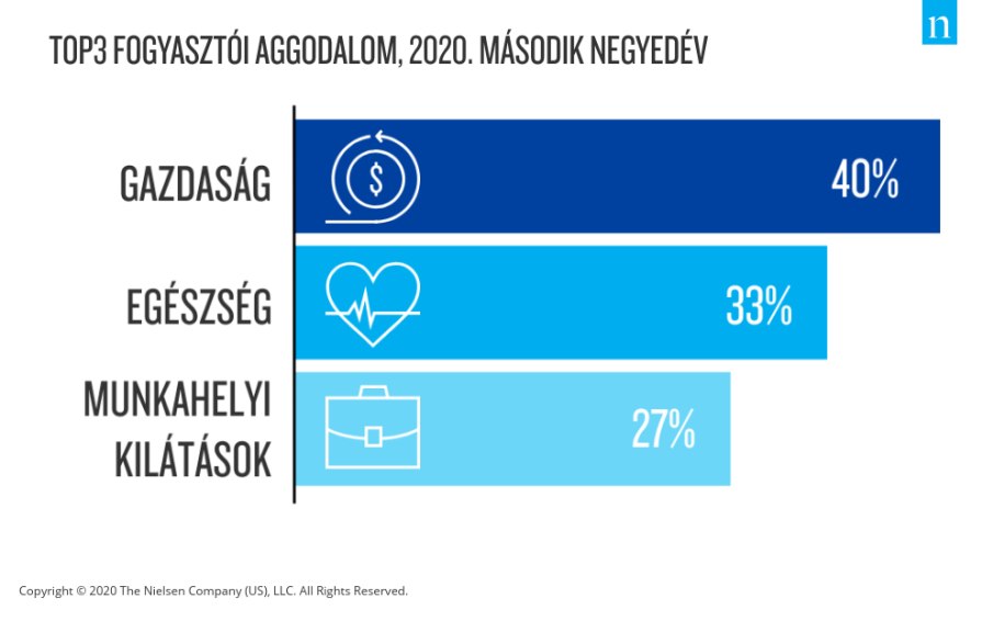 Ami a magyar fogyasztók legfőbb aggodalmait illeti: 40 százalék említette a gazdaság alakulása miatti félelmet első vagy második „főparaként”, az egészség miatt a válaszadók egyharmada aggódik, míg a harmadik helyre a munkahelyi biztonság miatti félelem került fel (27 százalék). A kontinens egységes képet mutat fogyasztói félelmek tekintetében: gazdaság (41%), egészség (36%) és munkahelyi biztonság (23%).