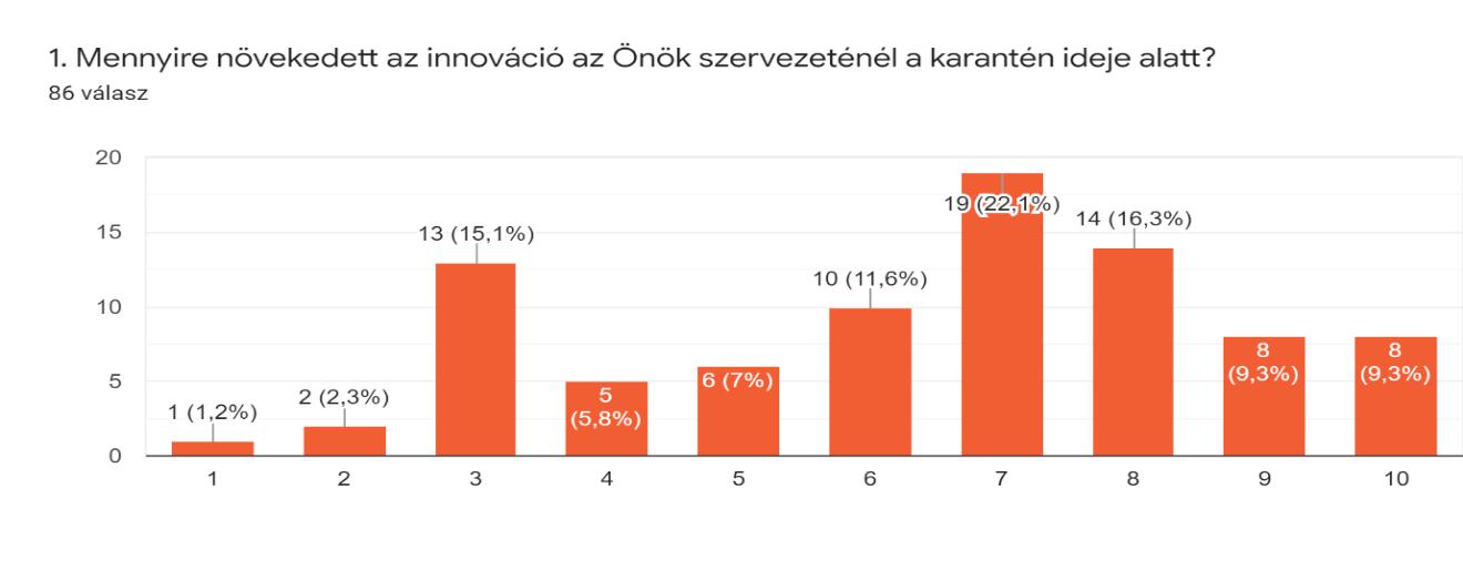 A kitöltők 57%-a egy 10-es skálán 7 vagy nagyobb pontszámot adott, megítélésük szerint határozottan és érezhetően növekedett az innováció mértéke a cégüknél.