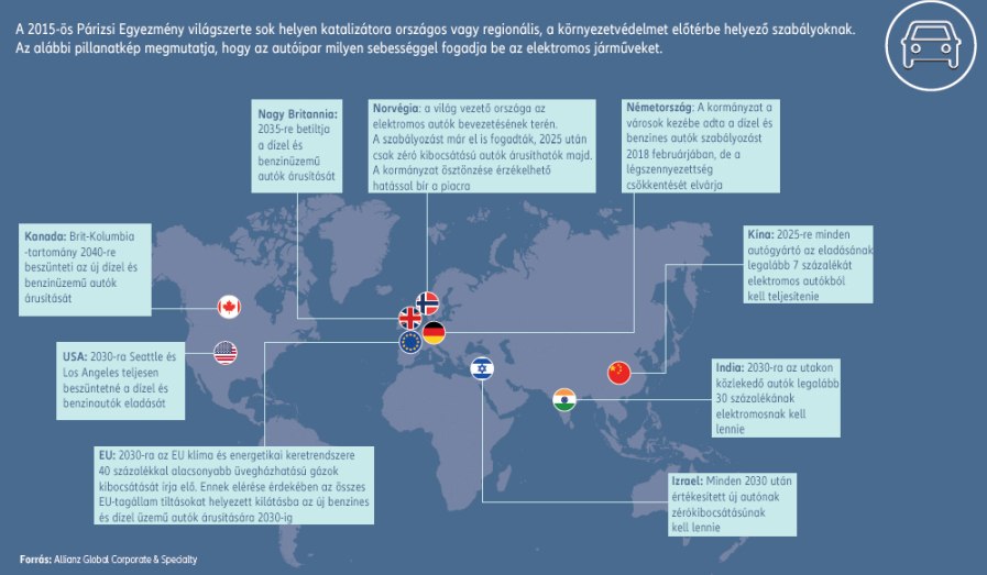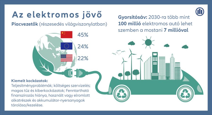 A Nemzetközi Energiaügynökség prognózisa szerint az utakon futó elektromos autók száma a következő évtizedre akár a százmilliót is elérheti. Jelenleg mintegy hétmillió elektromos meghajtású jármű közlekedik világszerte, ez a szám 2018-ban ötmillió volt, míg az azt megelőző évben mindössze ennek a fele. Az elektromos járművek gyors terjedéséhez többek között az árak folyamatos csökkenése, a kínálat megkétszereződése, és persze a környezet védelmét célzó állami és EU-s emissziós szabályozásoknak való megfelelés kényszere is hozzájárul. Szép új világ, a fenntarthatóság és a környezetvédelem jegyében, tiszta levegő, szebb, és zöldebb környezet – így képzeljük a jövő urbánus közegét. De vajon melyek azok a kockázatok, amelyekkel számolnunk kell? Az Allianz legfrissebb kutatásai segítenek, hogy tisztábban lássunk!