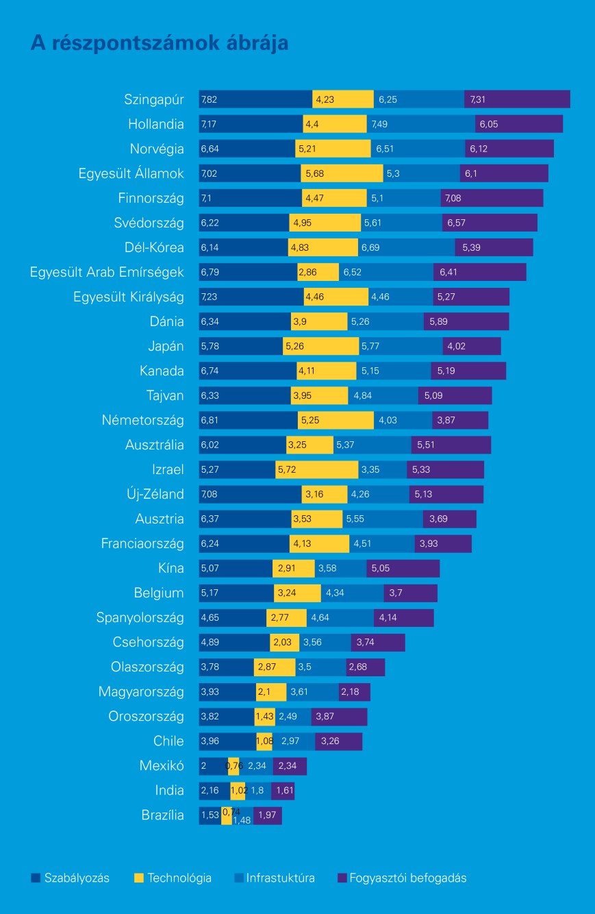 Magyarország pozícióit elsősorban a digitális készségek alacsony elterjedtsége rontja, ami rányomja bélyegét az önvezetési technológiák elfogadottságára is. Mindazonáltal az önmagában siker, hogy az önvezetési technológia elterjedését legjobban befolyásoló országokkal egy listán szerepel Magyarország.