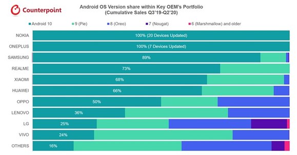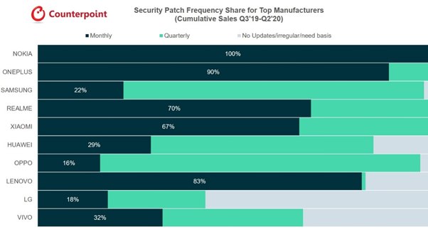 Az okostelefon-márkák teljesítményét kommentálva a Global Content Manager, Ritesh Bendre kiemelte: „Egyes márkák termékeik naprakészen tartására összpontosítanak, míg mások csak jelentős késedelemmel adják ki a szoftver- és biztonsági frissítéseket. A rendszeres szoftver- és biztonsági frissítések nemcsak az általános eszközélményt segítik, hanem segítenek az eszközöknek az értékük megőrzésében is. Meglepő módon van 10 olyan okostelefon-gyártó, amelyeknek nincs egyértelmű stratégiájuk arról, hogy miként tájékoztassák az ügyfeleket, ha eszközeik alkalmasak biztonsági és szoftverfrissítésekre. Úgy gondoljuk, hogy ez a kérdés egyre fontosabbá válik, mivel a fogyasztók tovább megtartják okostelefonjaikat, és jobban támaszkodnak rájuk. A Nokia és a OnePlus készülékek itt is jól teljesítettek. ”