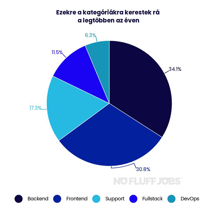A fejlesztési nyelvek, illetve technológiák alapján a legnépszerűbb keresési kifejezés a Java, majd a .Net volt, erre a két program nyelvre az IT-szakemberek több mint fele keresett rá. A harmadik helyen a C végzett 20%-kal, a negyediken a PHP 18,7%-kal, a sort pedig a Python zárta 8,4%-kal. Az év legnépszerűbb kategóriája szinte azonos arányban a Backend és a Frontend volt, az álláskeresők kétharmada ezt a pozíciót kereste. Harmadik helyen a Support végzett 17,3%-kal, melyet a FullStack 11,5%-kal és a DevOps követett 6,3%-kal.