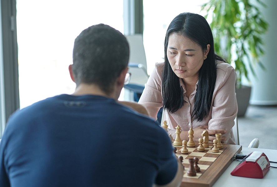 Négy éve a grúziai sakkolimpia előtt a magyar női válogatott 49,5:30,5 arányban győzte le a Morgan Stanley munkatársaiból álló csapatot, mielőtt végül a kiváló ötödik helyen zárta a nemzetközi tornát. Most, az augusztusi indiai sakkolimpiára készülő – és ott az éremszerzést megcélzó – válogatott ismét összemérte az erejét a globális pénzintézet magyarországi munkatársaival, és ezúttal 14:11 arányban győzedelmeskedett a Hoang Thanh Trang, Lázárne Vajda Szidónia, Gara Tícia, Gaál Zsóka, Terbe Julianna összetételű csapat.