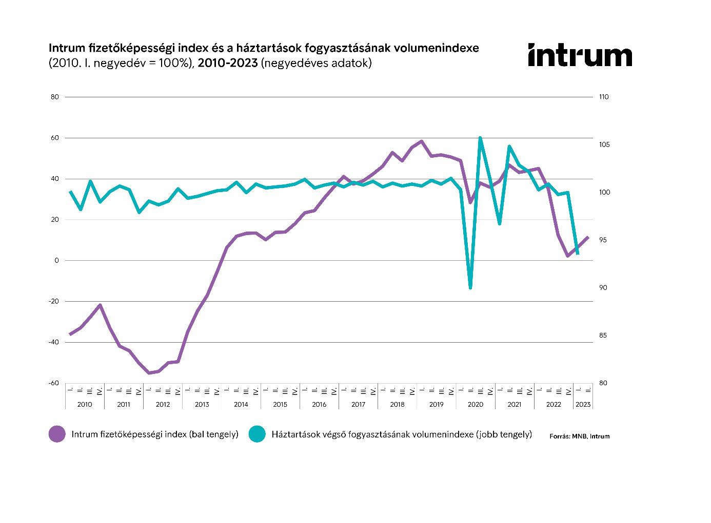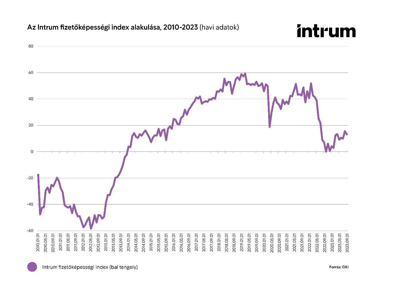 2023 harmadik negyedévében folytatódott a magyar háztartások fizetőképességének enyhe növekedése az Intrum és a GKI kutatása alapján. Az Intrum Fizetőképességi Index (IFI) az első negyedévben 6,51, a másodikban 11,6, a harmadikban pedig átlagosan 12,99 ponton állt. Az év eleje óta tehát kis mértékben javult a lakosság pénzügyi helyzete, éves összehasonlításban azonban még mindig jelentős csökkenést látunk, hiszen az előző év azonos időszakához képest 70 százalékkal csökkent az index értéke. A harmadik negyedéves érték még mindig az egyik legalacsonyabb az elmúlt 10 évben, utoljára 2014-15 környékén állt hasonló szinten a fizetőképesség.