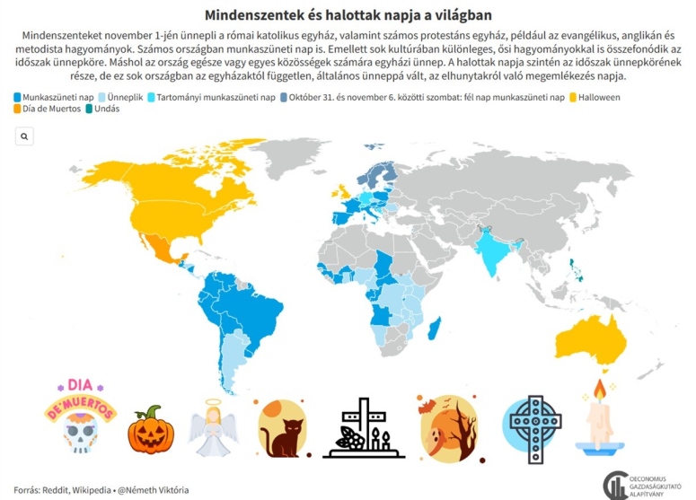 Indiában a Mindenszentek napja Karnataka államban munkaszüneti nap, de az egész országban keresztény vallási ünnepnek számít, az érintett közösségek számára. A halottak napja szintén az időszak ünnepkörének része, és a legtöbb kultúrában kereszténység előtti gyökerekkel rendelkezik az ősök és a holtak tisztelete. Lényegében a halloween és a mexikói halottak napja (Día de los Muertos) az élők és a túlvilág közötti kapu kinyílását szimbolizálja. November 2. sok országban – ahogyan Magyarországon is – az egyházaktól független, általános ünneppé vált, az elhunytakról való megemlékezés napja, amely nem munkaszüneti nap.
