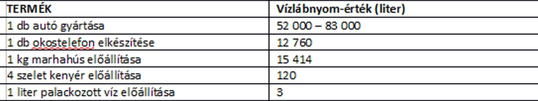 Pár példa a virtuális vízfogyasztásra, mely befolyásolja a vízlábnyomunkat: