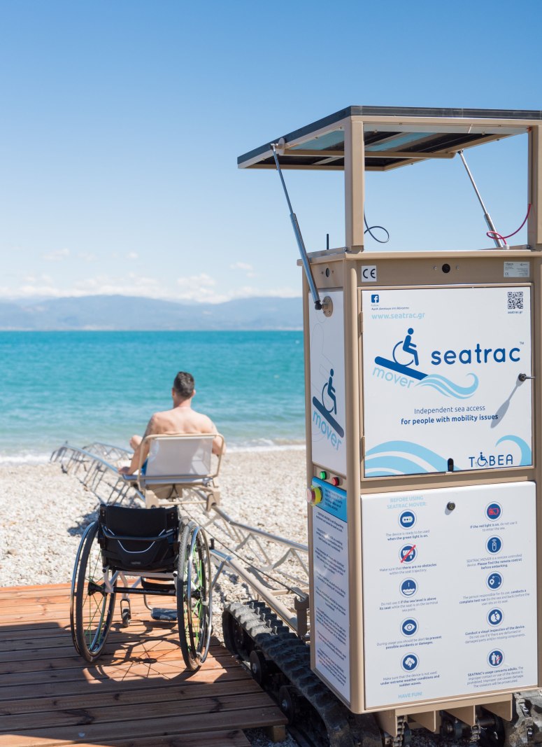 A SEATRAC jelentősen növeli az esélyegyenlőséget a tengerparton. A görög TOBEA és a Siemens együttműködésével kifejlesztett eszköz speciális, sínrendszerre szerelt széke egy távirányító segítségével teszi lehetővé, hogy a mozgáskorlátozott emberek önállóan, külső segítség nélkül juthassanak be a vízbe, majd vissza a partra. A technológia révén így azok is élvezhetik a tenger nyújtotta élményeket, akik korábban a megfelelő infrastruktúra hiánya miatt ezt nem, vagy csak korlátozottan tehették meg.