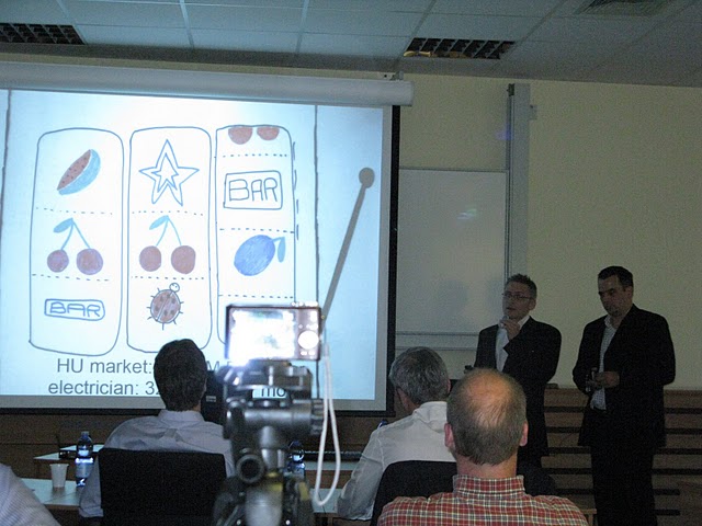 Tetszett még Bonyhádi Gábor, MarkmyProfessor ötlete, bár ebben szerintem igazából Gábor meggyőző és előadói képessége volt a nyerő. Abszolút el tudtam volna Gábort bármelyik startup kereskedelmi vezetőjeként képzelni, annyira rá tudott dumálni erre a tőlem (már) messze álló webes értékelő website-ra, amiben az egyetemi tanárokat és óraadókat lehet minősíteni. Itt viszont nagyon jó volt a benchmarking, mert ebből megtudhattuk, hogy az EU-ban 19 millió potenciális tanuló van. Gábor 480 ezer eurót kért a 6 országban történő terjeszkedésre. Sajnos a zsűri (Oszkó Péter, Bruckner Zoltán, Kovács Zoli) nem hitte el neki, hogy képes lesz ezt megfelelő sales startégiával megvalósítani.