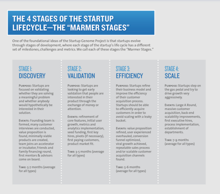 2011-ben készült egy felmérés, a Startup Genome Report, amely arra keresi a választ, hogy mi a titka a Szilícium-völgybeli vállalkozások sikerének. A tanulmányt a Berkley és a Stanford egyetem munkatársai készítették, és többek közt hozzájárult Steve Blank is. Több mint 650 internetes startup vállalkozást vizsgáltak. A felmérés a webes startupok fejlődési görbéje alapján négy alkategóriáját is megkülönbözteti a startupoknak. Ezek a következőek:„The Automzier”, „The Social Transformer”, „The Integrator” és „The Challenger” (Berman et al. 2011).