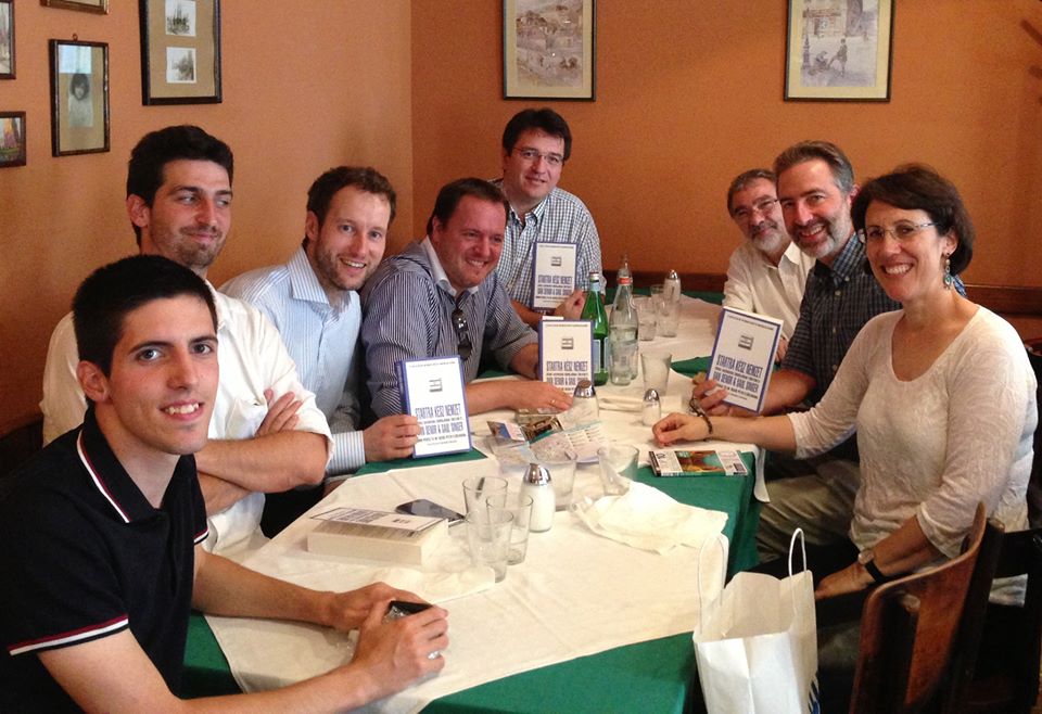 Start-up kerekasztal az Izraeli Innovációs napon, a Graphisoft parkban. A kezét a Gazella izraeli zsűri tagja emeli fel. Balra mellette Bruckner Zoltán (Primus) és jobbra Valner Szabolcs.