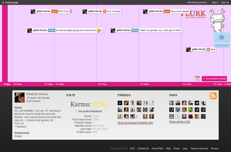 Plurk – úgy látszik, hogy a mikroblog szolgáltatásokra nagyon rájár a rúd, mert a Pownce-hez hasonló Plurk is kezd kiesni a völgybeli pixisből. Pedig Ázsiában a Twitter nagy megverőjének mondták, szép és átgondolt felülete miatt, ami amolyan timeline-ba szerkesztve mutatta a mikroblog üzeneteket: