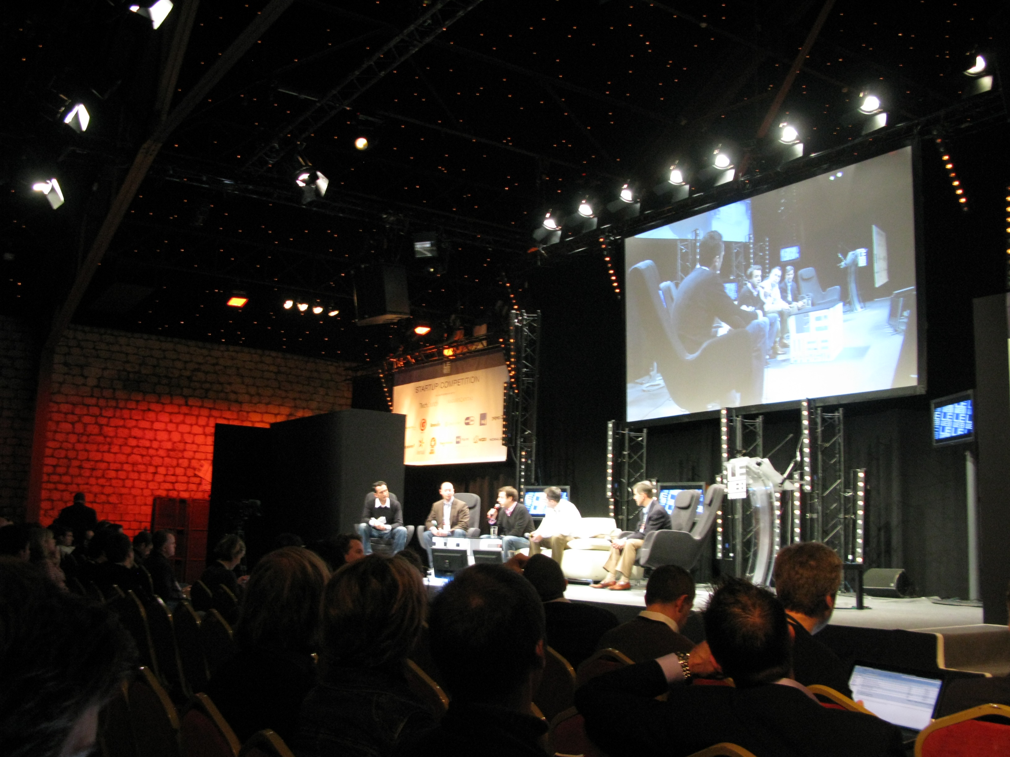 Nos, a párizsi LeWeb startup szekciója is lenyűgöző. Van egy hatalmas Hungexpo-méretű pavilon mellett egy másik „kisebb” pavilon, amiben csaknem 100 kiállító mutatja be startup-ját, inkubátorát, vagy éppen nemzeti programját (pl. írek, oroszok). Illetve a pavilon hátában van egy 50-100 fős nézőtérrel rendelkező színházterem, ahol folyamatosan startup verseny megy, zsűrizássel – klasszikus formában. Az itt győztesen szereplő cégek aztán az utolsó nap átkerülnek a nagypavilonba, a mega nagy színpadra és mintegy 3000-es nézőközönség előtt versenyeznek. Maga a nézőtér is lenyűgöző, mert ilyenkor a lépcsőkön is ülnek és izgatottan várja mindenki a nyertest…