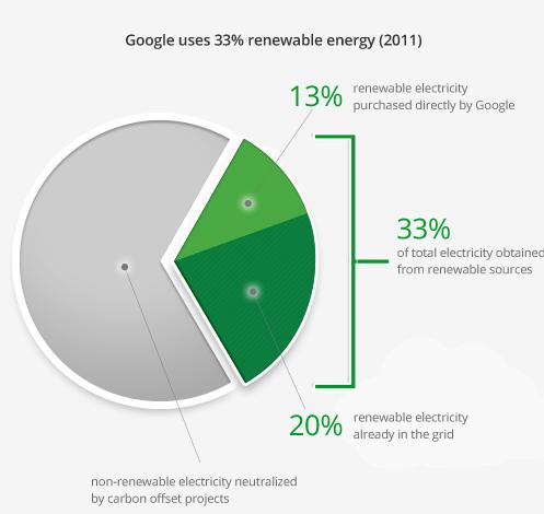 A Google a most fényképeken bemutatott központokat rendkívül szigorúan őrzi, elsődleges prioritásként az adatok biztonságát kezeli. Még ezekkel a létesítményekkel együtt is, melyek a világ egyik legerősebb hálózatát alkotják, a Google olyan környezetbarát technológiákat is mindinkább alkalmaz, illetve olyan különleges kezdeményezésekbe fektet be, hogy összességében környezeti hatása, ökológiai lábnyoma kisebb mint nulla, köszönhetően főként a széndioxidkibocsátás ellentételezésének. Erről további infó itt.