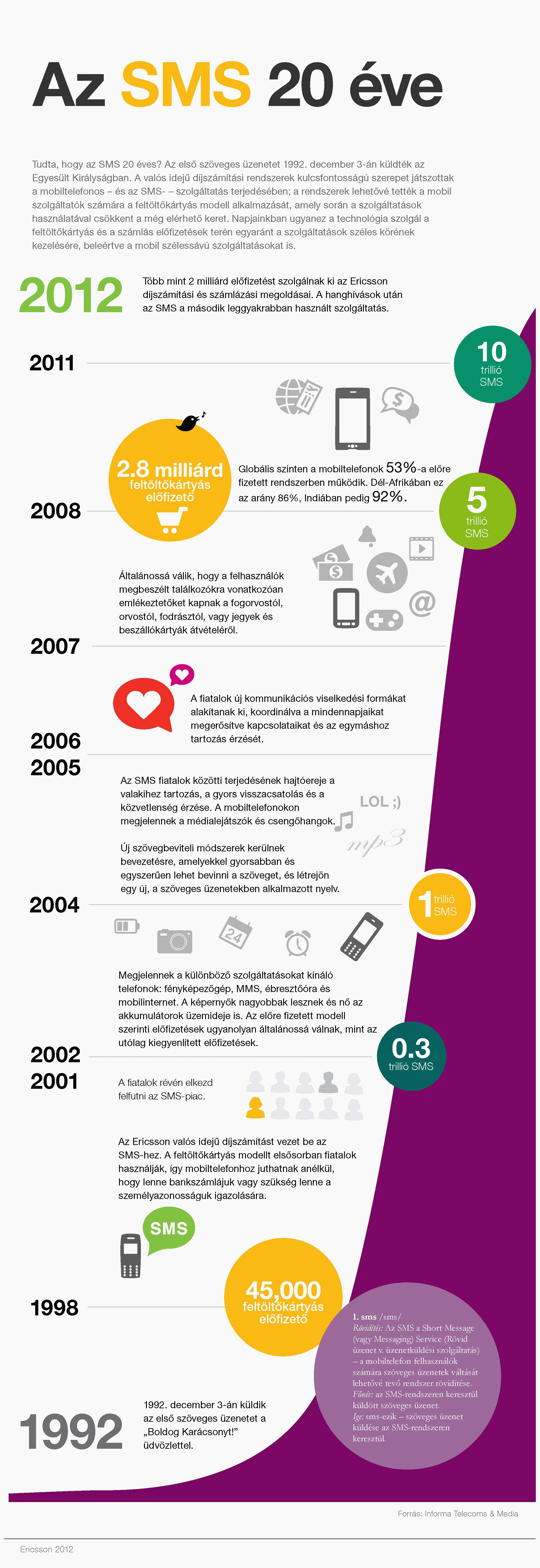• Az Ericsson díjszámítási és számlázási megoldásaival kiszolgált előfizetések száma mára átlépte a 2 milliárdos határt, és még napjainkban is az SMS a második leggyakrabban használt szolgáltatás a hanghívás után.