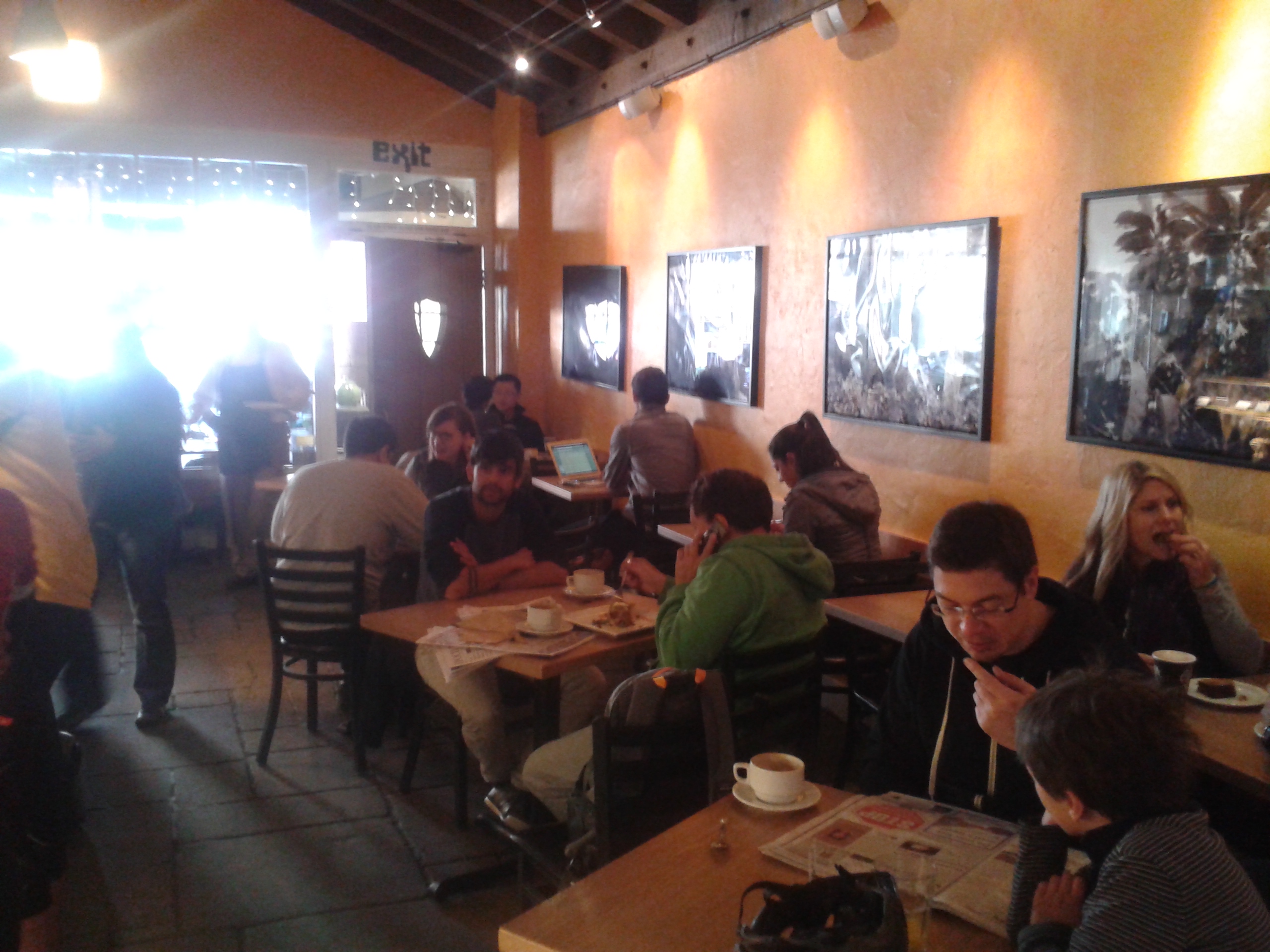 Aztán irány San Mateo-ból Palo Alto-ba (lásd Stanford Campus) és leghíresebb kávéház, ahol a legnagyobb deal-ek történnek. Addig amíg a Youtube-os kávéházban alig volt turista, bizony a Coupa tele volt turistával és ehhez az egyetlen női/férfi WC is kevés volt. Jó nagy sorban kellett állni egy „exit-fast-round”-ra.